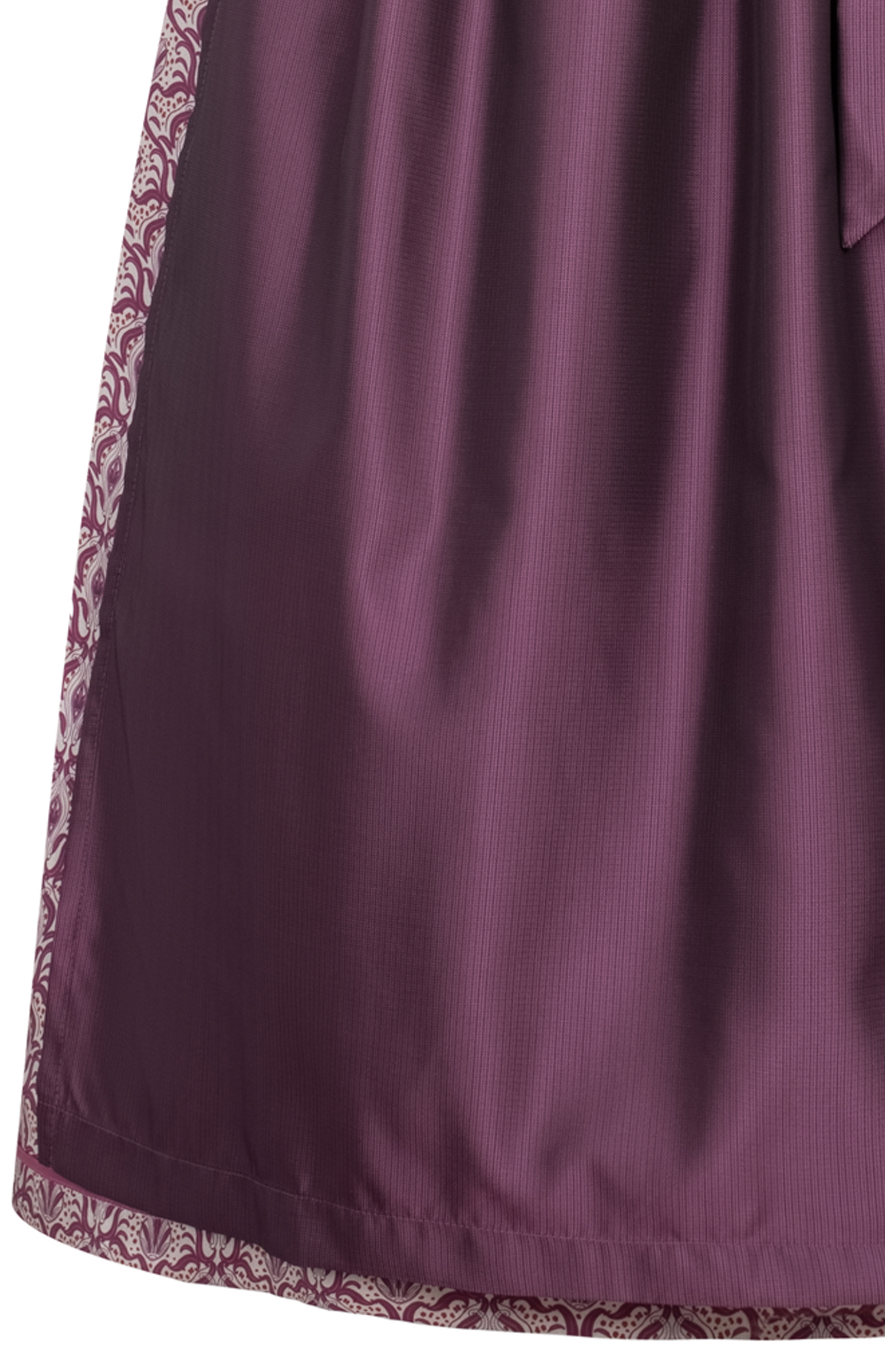 Der lange Rock fällt weich und zeigt ein dezentes Paisley-Muster – ein femininer Eyecatcher mit festlicher Wirkung. Praktisch und kaum sichtbar: eine seitliche Eingriffstasche für Handy, Lippenstift oder Schlüssel. Die schimmernde Schürze in dunkler Beere verstärkt den edlen Ton-in-Ton-Look und verleiht Tiefe und Charakter. Stilvoll, modern und trotzdem klar in der Tradition verankert.