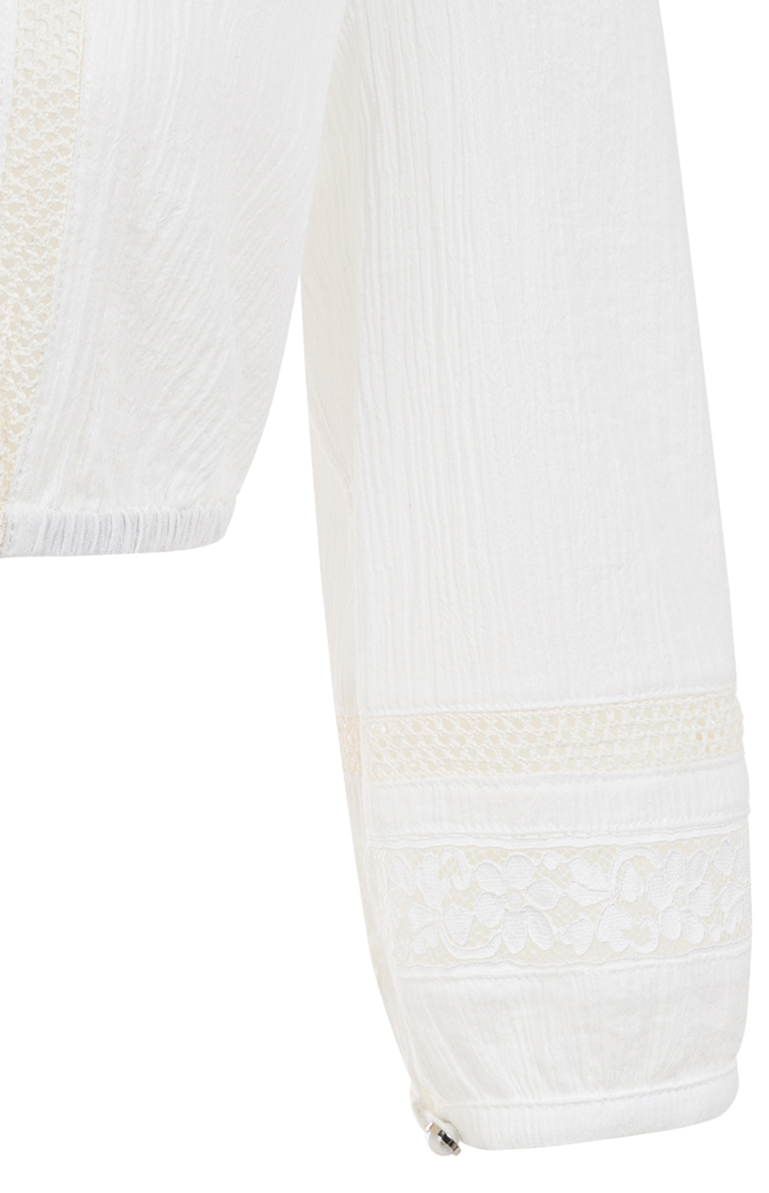 Unsere Claudia in Schneeweiß ist die perfekte Ergänzung zu Ihrem Dirndl. Sie ist mit zwei breiten Spitzenbahnen im Blumenmuster und zwei schmale Häckelspitzenbahnen geschmückt, welche unsere Claudia romantisch und gleichzeitig elegant wirken lassen. Geschlossen wird diese mit wunderschönen Perlmuttknöpfen und unten am Saum mit einem kleinen schlichten Knopf. Der Saum ist mit einem Gummizug versehen, welche das Tragen angenehm macht, und für einen perfekten Sitz sorgt. In den langen Ärmel werden die beiden Spitzenmuster wieder aufgegriffen, diese sind am Ärmelsaum wieder mit einem Perlmuttknopf versehen.Materialzusammensetzung: Pflegehinweis: