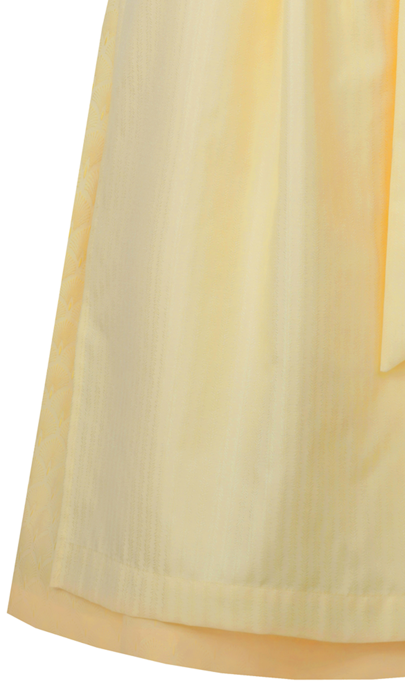 Sie möchten mal so richtig schick zum nächsten Fest? Dann ist unser Midi Dirndl Obing in Zitrone von MarJo die richtige Wahl. Das noble Cordoberteil mit eckigem Ausschnitt wird vorne durch Perlmutt-Optik-Knöpfe geschlossen. Der Rock strahlt mit seinen stilisiertem Pfauenfedern-Muster und ist in tiefe Kellerfalten gelegt. Es sind zweiseitig Eingriffstaschen vorhanden, in denen Sie Ihre mitgeführten Kleinigkeiten verstauen können. Die Schürze mit kleinen Fischgräten-Muster, welche zum Binden ist, gibt dem Dirndl den letzten Schliff und lässt es in purer Eleganz erstrahlen. In diesem wunderschönen Kleid werden Sie auf jedem Fest ein Hingucker sein.