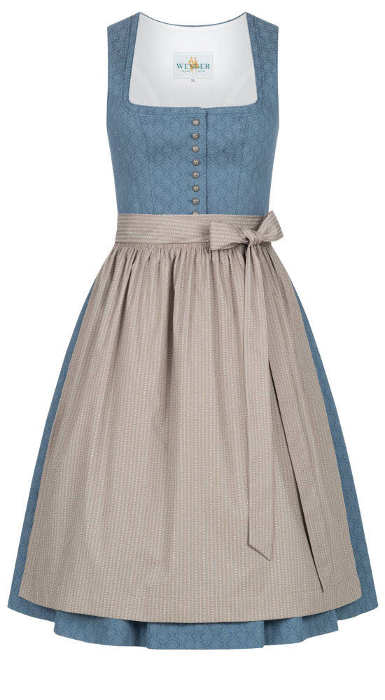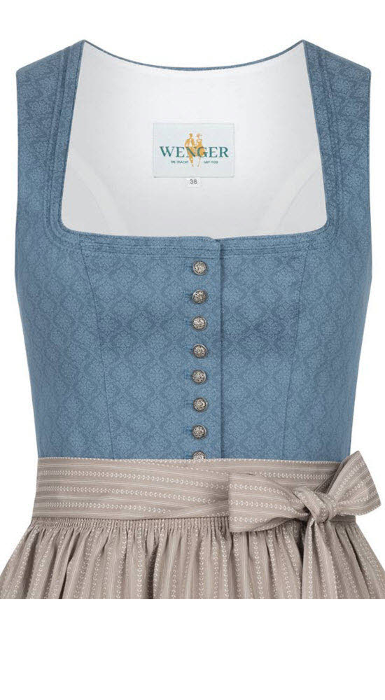Das wunderschönes Midi-Dirndl Ulla in Blau von Wenger ist ein sehr edles Dirndl mit zartem Rautenmuster. Das Oberteil hat einen eckigen Ausschnitt und wird durch eine Knopfleiste in Altsilber-Look geschlossen.