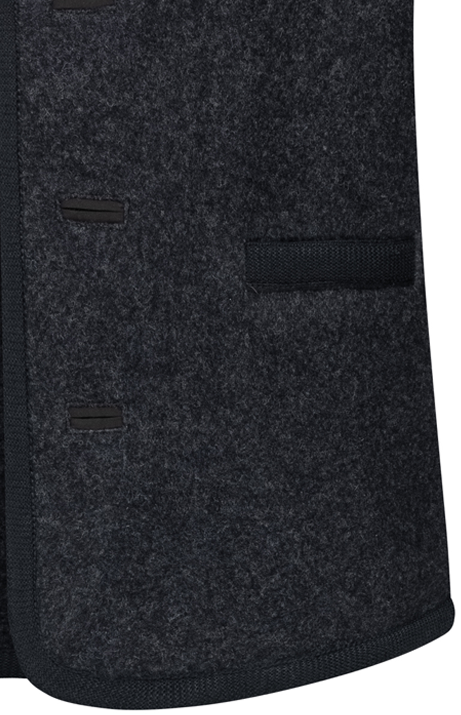 Die original Nübler Walkjacke Friedrich präsentiert sich in einem eleganten Dunkelblau. Die schlichte Jacke hält warm und kann auch sehr gut zu festlichen Anlässen getragen werden. Friedrich wird komplett durch eine dezente Strickborte eingefasst und endet nach oben hin in einem leichten Stehkragen. Geschlossen wird er mit hochwertigen Knöpfen in Altsilberlook. Es sind vorne zwei Taschen vorhanden. Diese schicke Walkjacke ist perfekt kombinierbar und kann damit im Alltag als auch auf jeder Hochzeit, Kommunion, Taufe, Firmung, Konfirmation und Familienfeier getragen werden.
