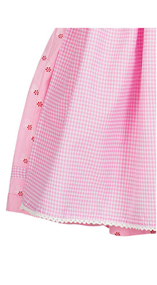 Das Modell Linda ist ein süßes Kinderdirndl aus dem Hause Nübler. Das Dirndl in Rosa ist mit einem Blumenprint versehen. Den runden Ausschnitt umrahmt eine Froschmaulborte. Am Mieder sind Blumen-Ösen angebracht in denen ein rosa Satinband eingefädelt ist. Die Schürze ist rosa-weiß kariert und hat am Saum eine Spitzenborte. Sie passt optisch sehr gut zum Dirndl. Mit diesem Kinder-Dirndl wird das Mädchen garantiert zum Hingucker auf jeder Kirchweih, Hochzeit, Kommunion, Taufe, Firmung, Konfirmation, Familienfest oder jedem anderen Fest.