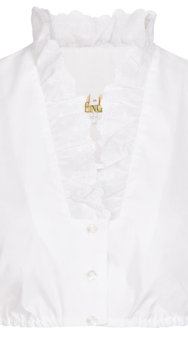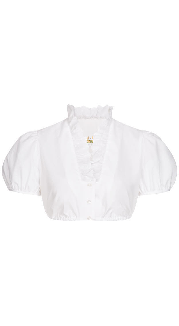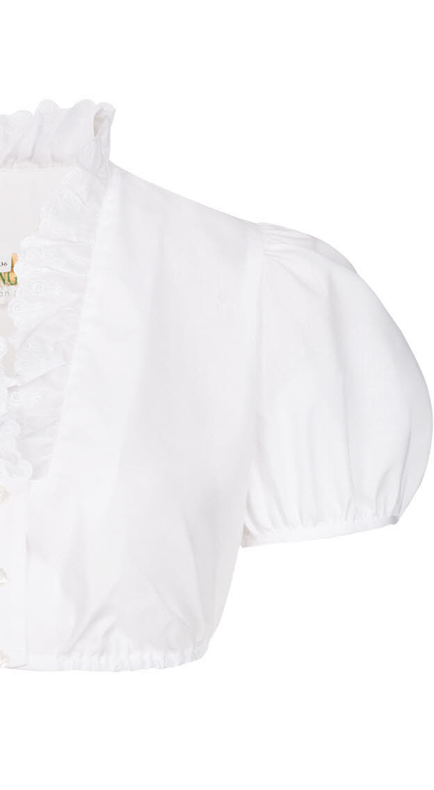 Die Dirndlbluse passt perfekt zu einem Dirndl mit V-Ausschnitt.